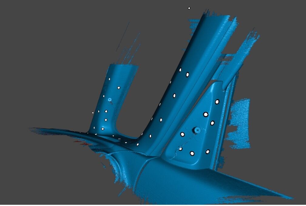 レーザーポインタを用いて、運転席と助手席の間に焦点を合わせた状態で3Dスキャンを実施。